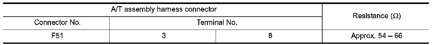 2. Check the resistance between the A/T assembly harness connector terminals.