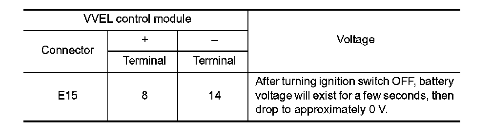3. Check the voltage between VVEL control module harness connector.
