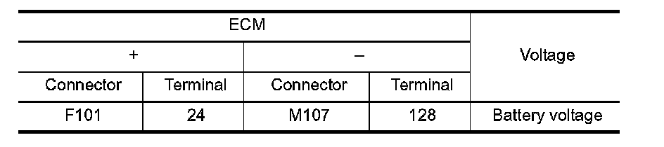 2. Check the voltage between ECM harness connector terminals.