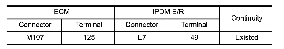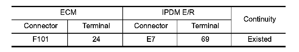 3. Check the continuity between ECM harness connector and IPDM E/R harness connector.