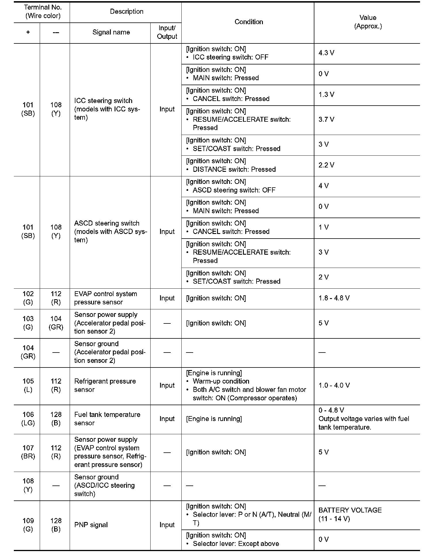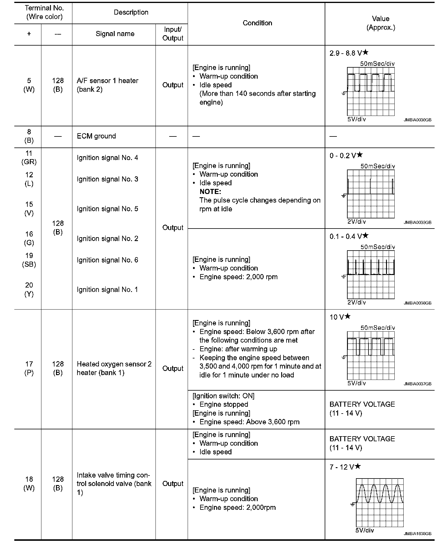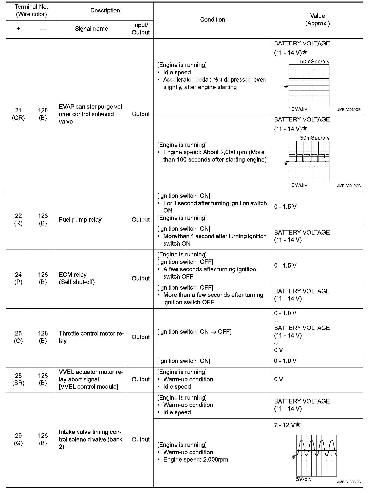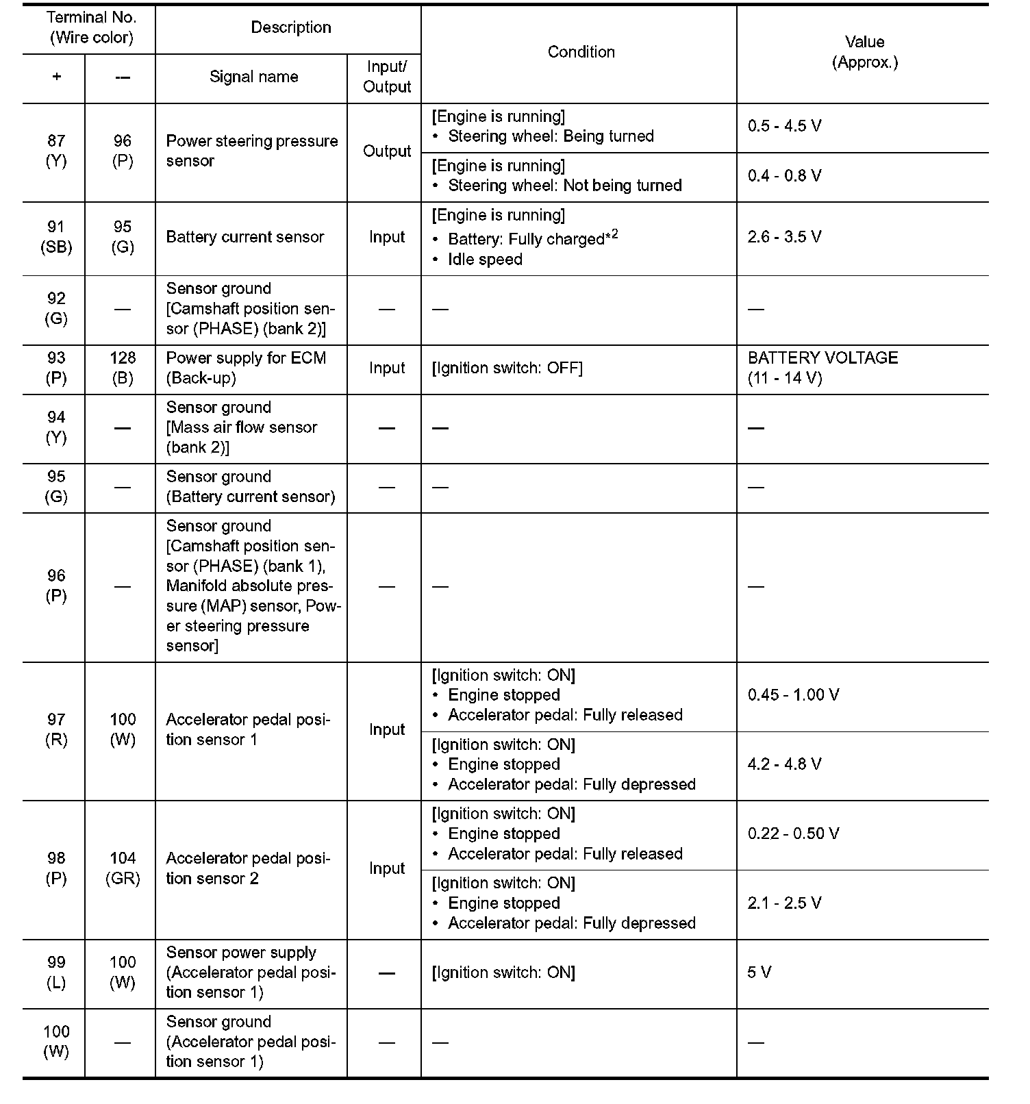 - Specification data are output/input values which are detected or supplied by the ECM at the connector.