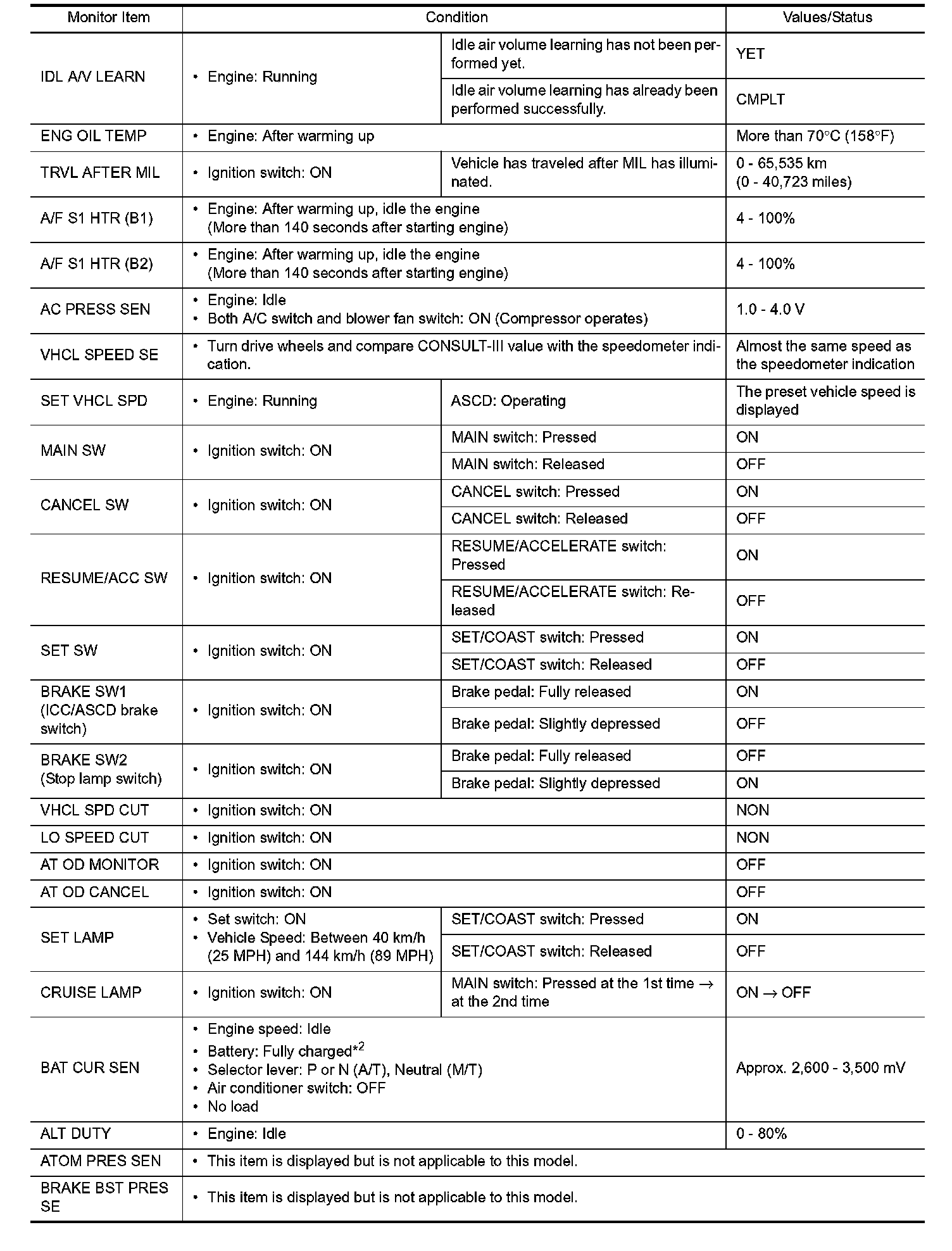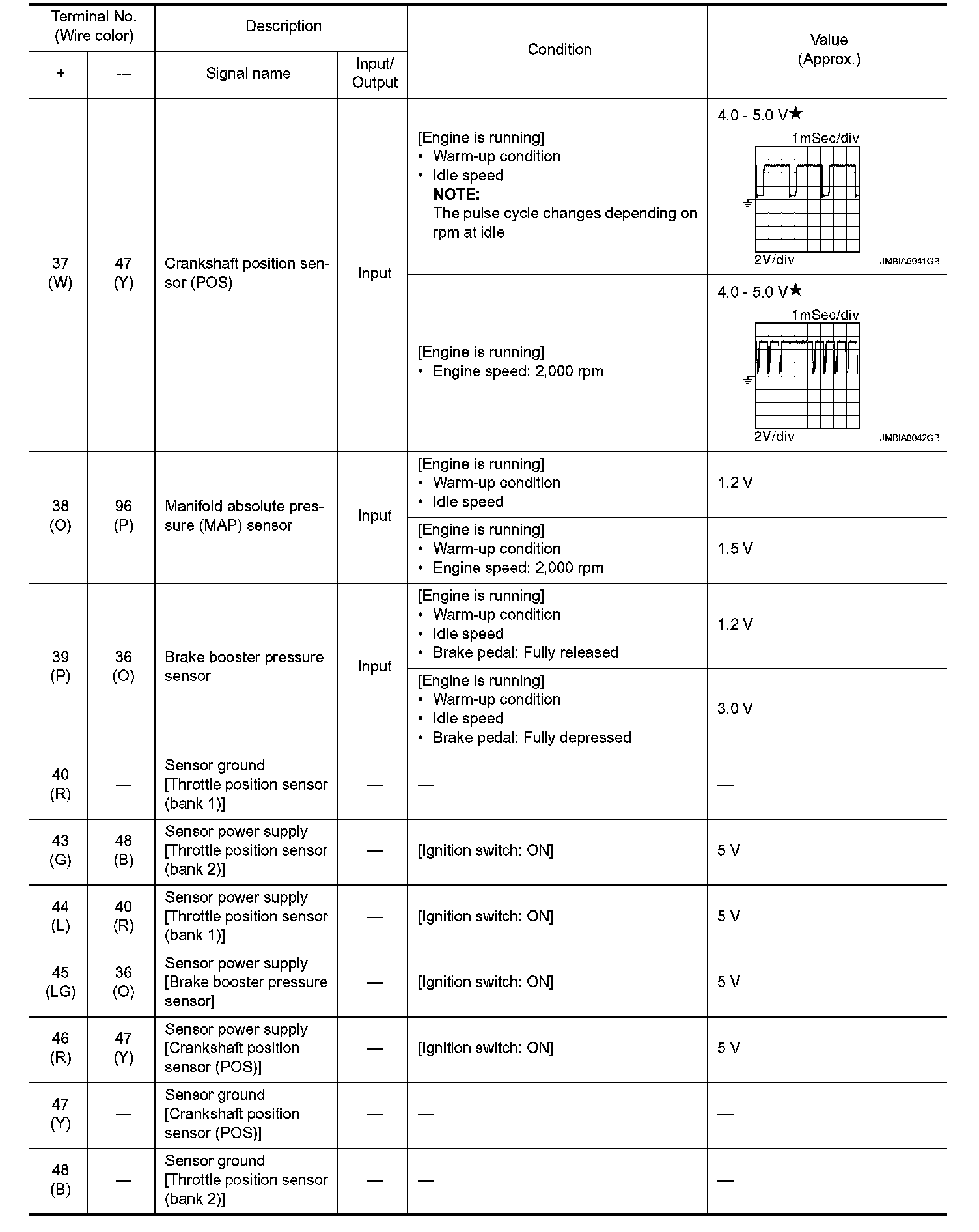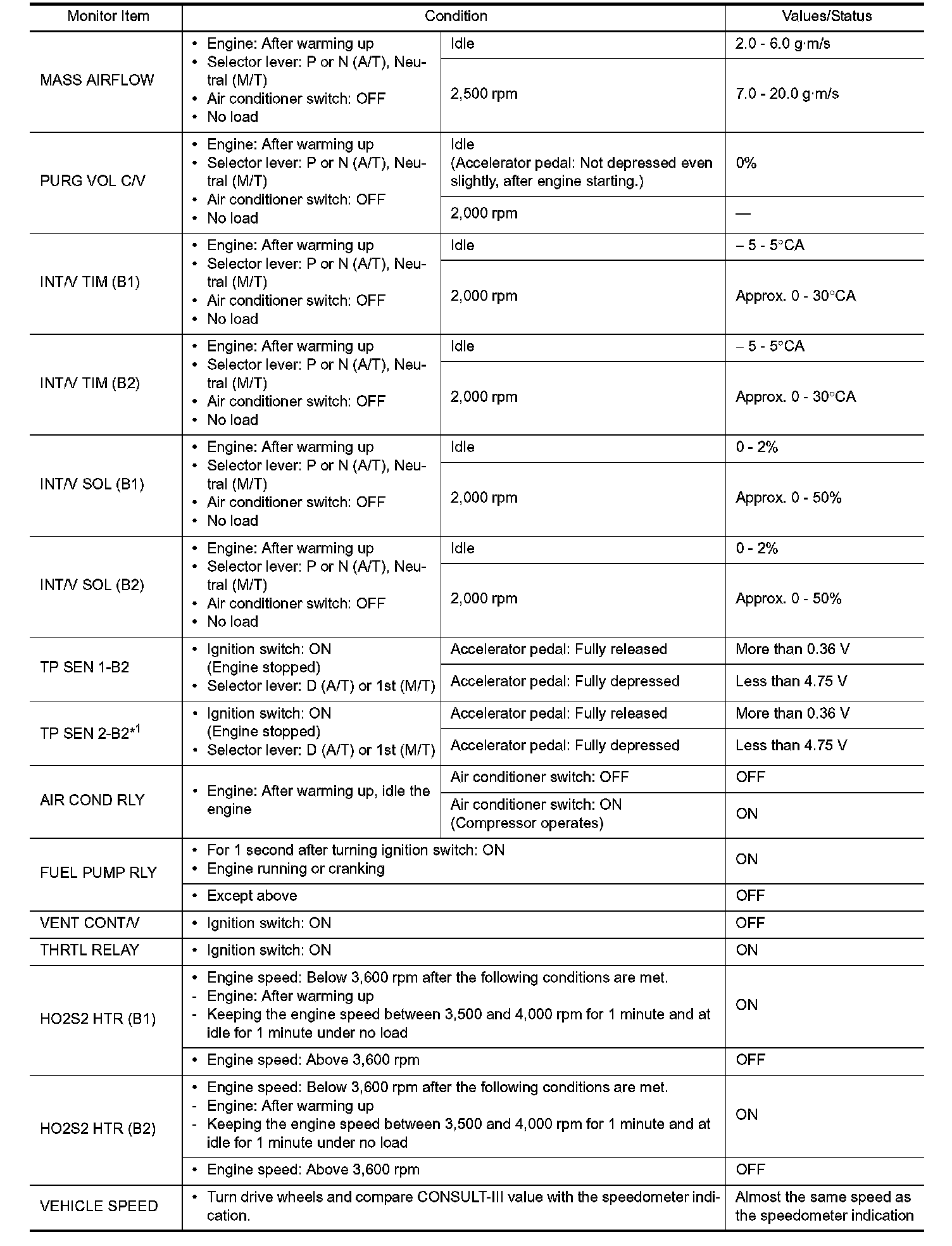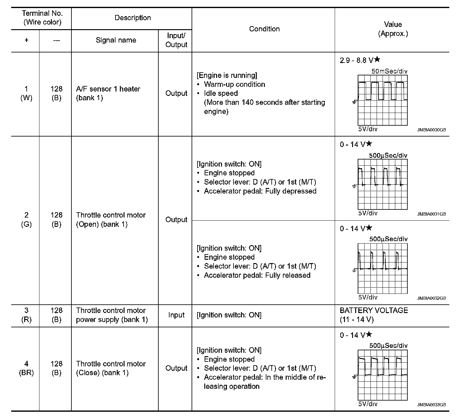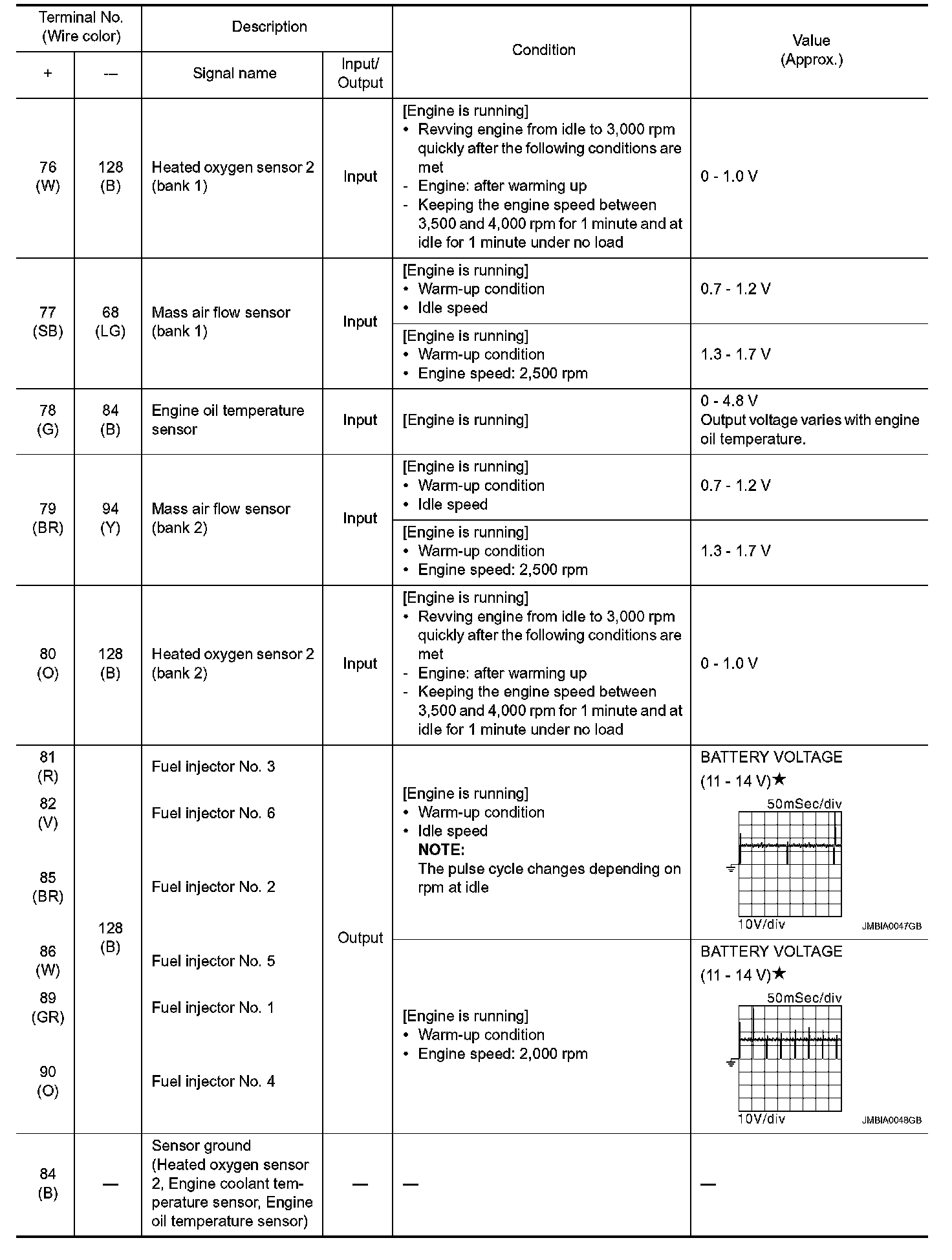 - Specification data are output/input values which are detected or supplied by the ECM at the connector.