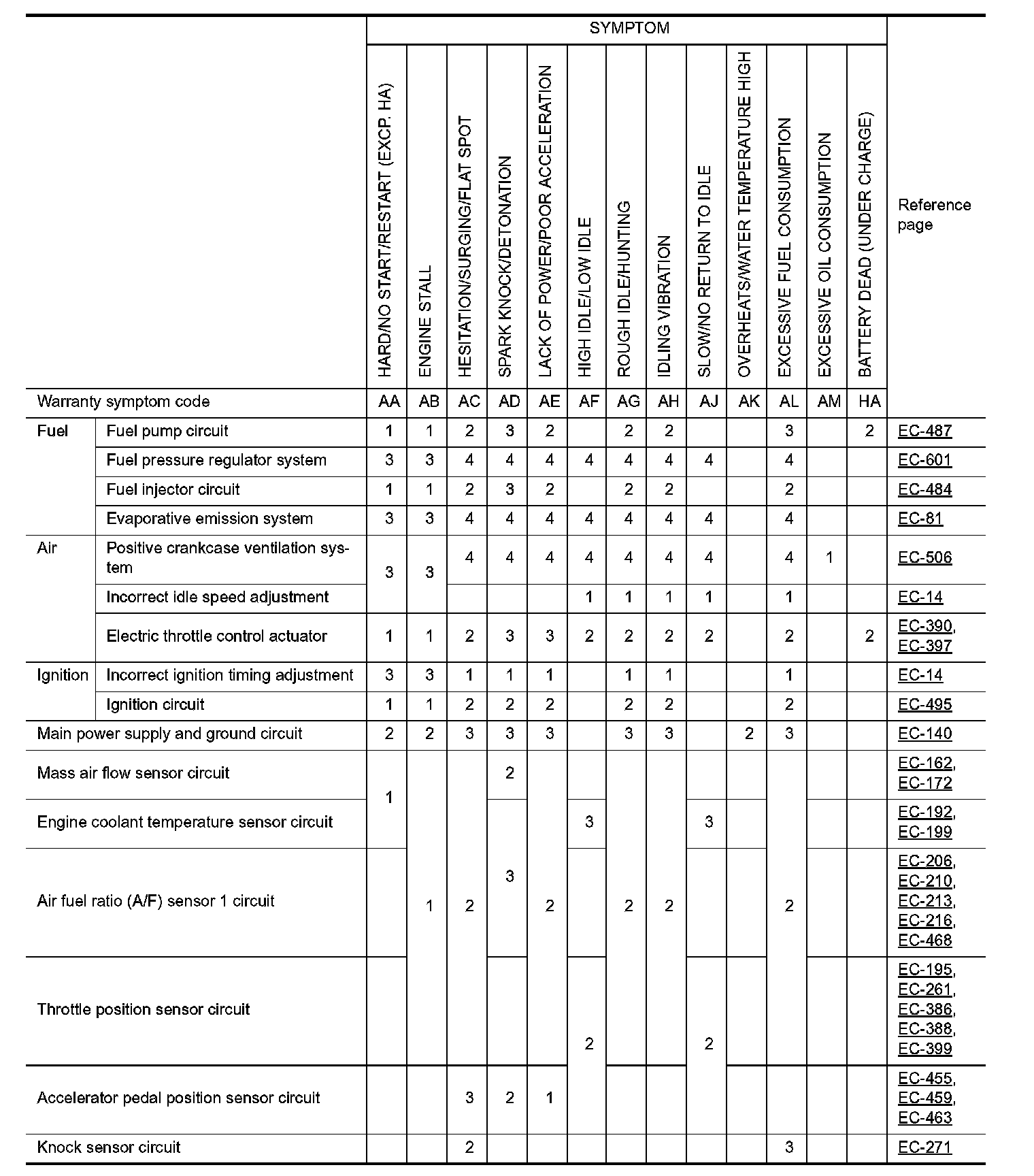 Symptom Table - System - Basic Engine Control System (Part 1):