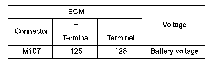 2. Check the voltage between ECM harness connector terminals as per the following.