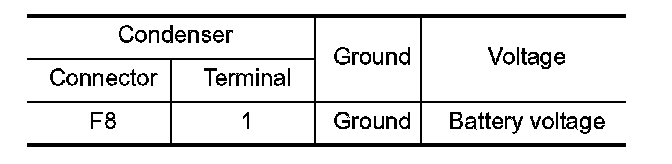 4. Check the voltage between condenser harness connector and ground.