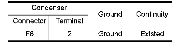2. Check the continuity between condenser harness connector and ground.