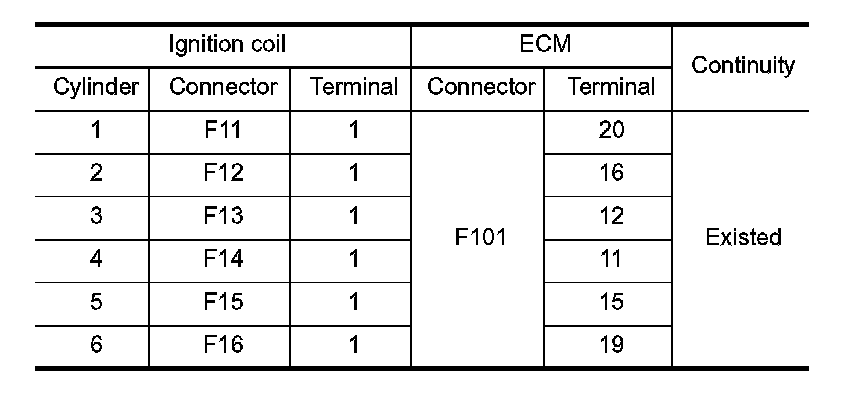 - Harness for open or short between ignition coil and harness connector F1