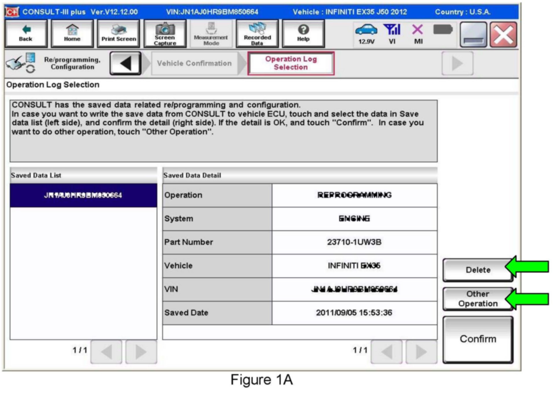 While navigating C-III plus, if the screen in Figure 1A displays, select Delete and then Other Operation.