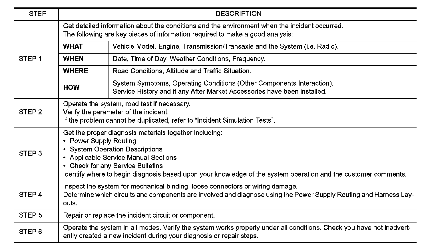 SERVICE INFORMATION FOR ELECTRICAL INCIDENT