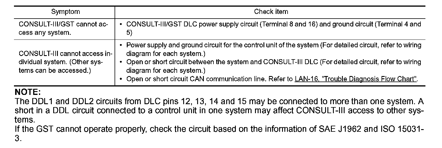 If the CONSULT-III/GST cannot diagnose the system properly, check the following items.