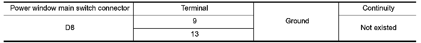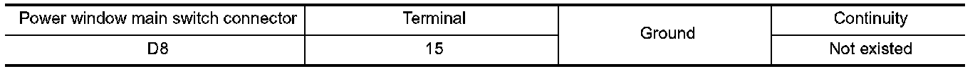 4. Check continuity between power window main switch harness connector and ground.