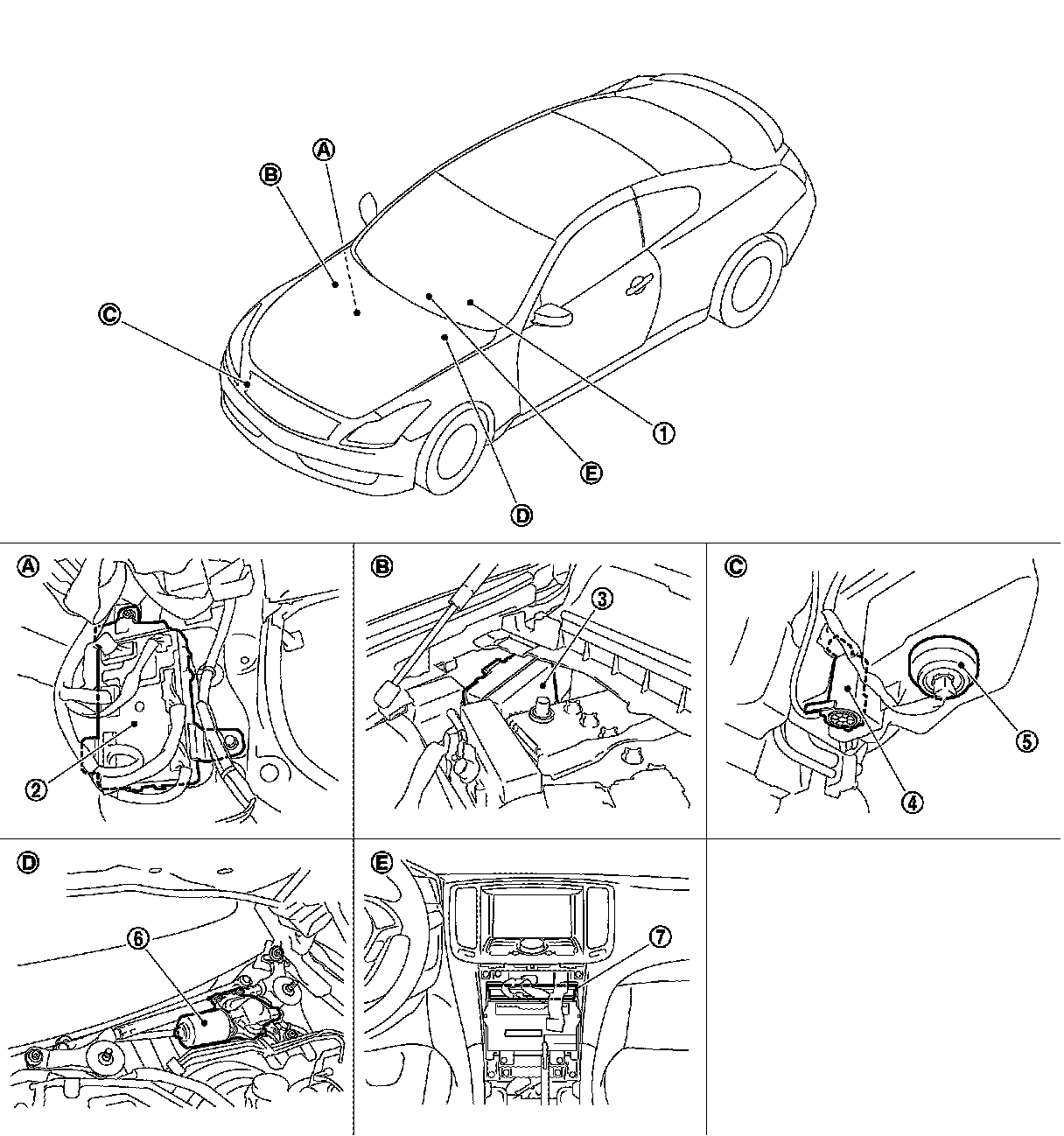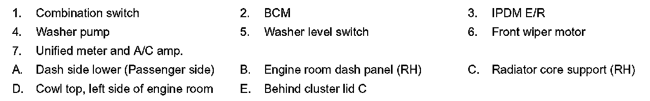 WITHOUT RAIN SENSOR : Component Parts Location