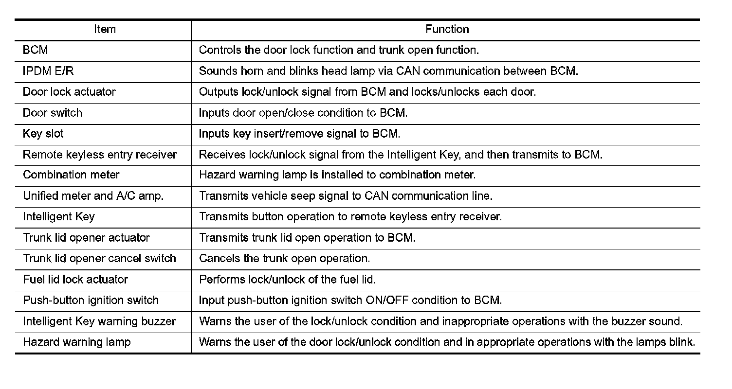 REMOTE KEYLESS ENTRY FUNCTION : Component Description