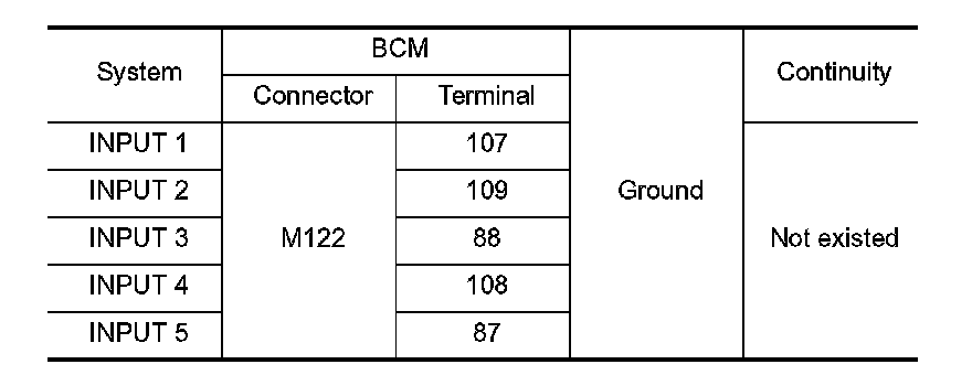 2.CHECK INPUT 1 - 5 SYSTEM CIRCUIT FOR SHORT