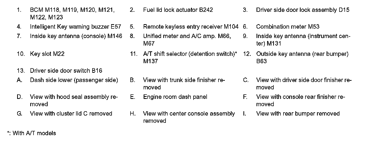REMOTE KEYLESS ENTRY FUNCTION : Component Parts Location