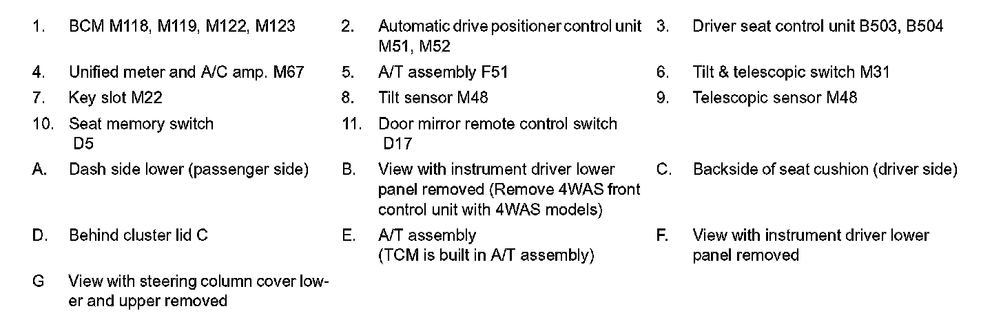 AUTOMATIC DRIVE POSITIONER SYSTEM : Component Parts Location