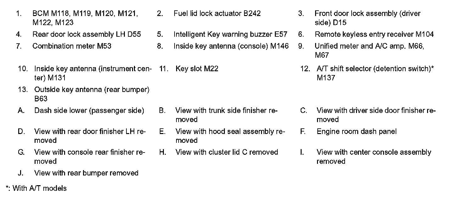 DOOR LOCK FUNCTION : Component Parts Location