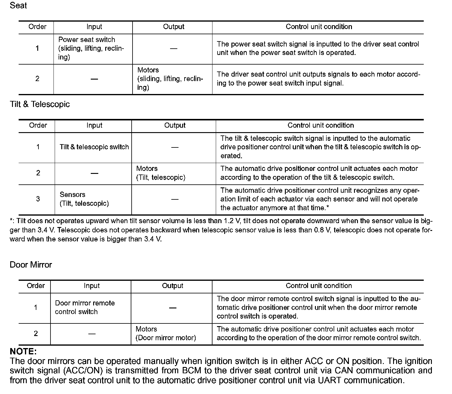 3. The driver seat, steering column or door mirror operates according to the operation of each switch.