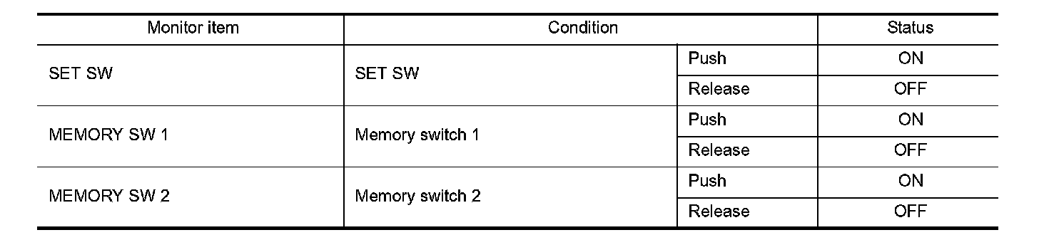 2. Select "MEMORY SW 1", "MEMORY SW 2" "SET SW" in "Data monitor" mode using CONSULT-III.