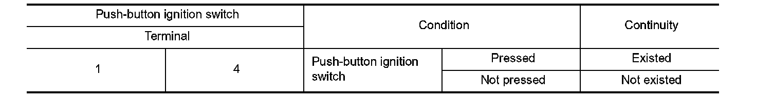 3. Check continuity between push-button ignition switch terminals.