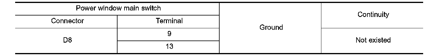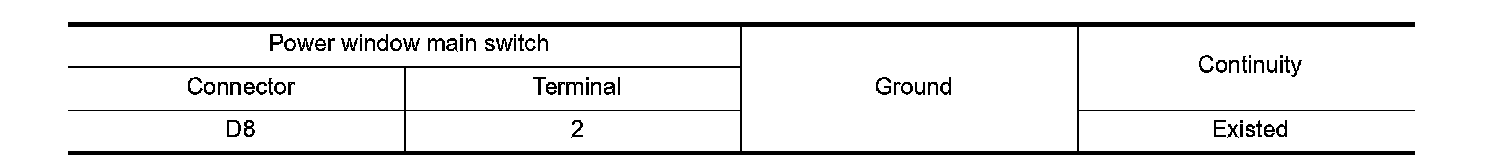 2. Check continuity between power window main switch harness connector and ground.