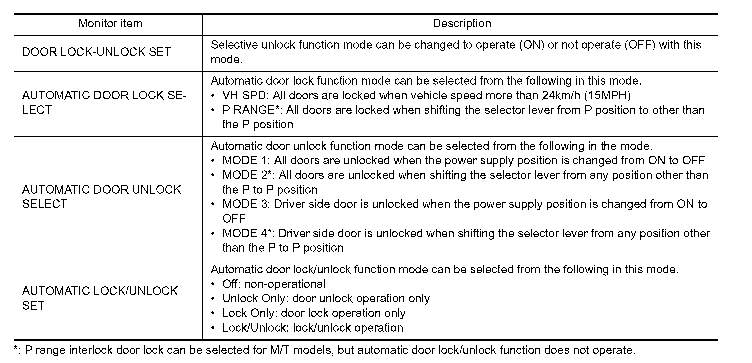 DOOR LOCK : CONSULT-III Function (