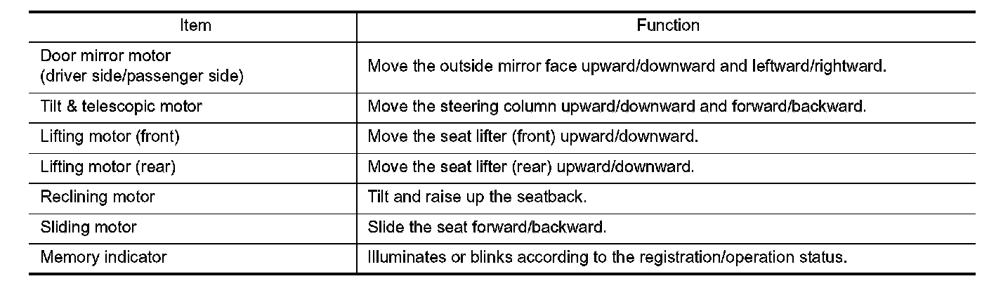 MEMORY FUNCTION : Component Description