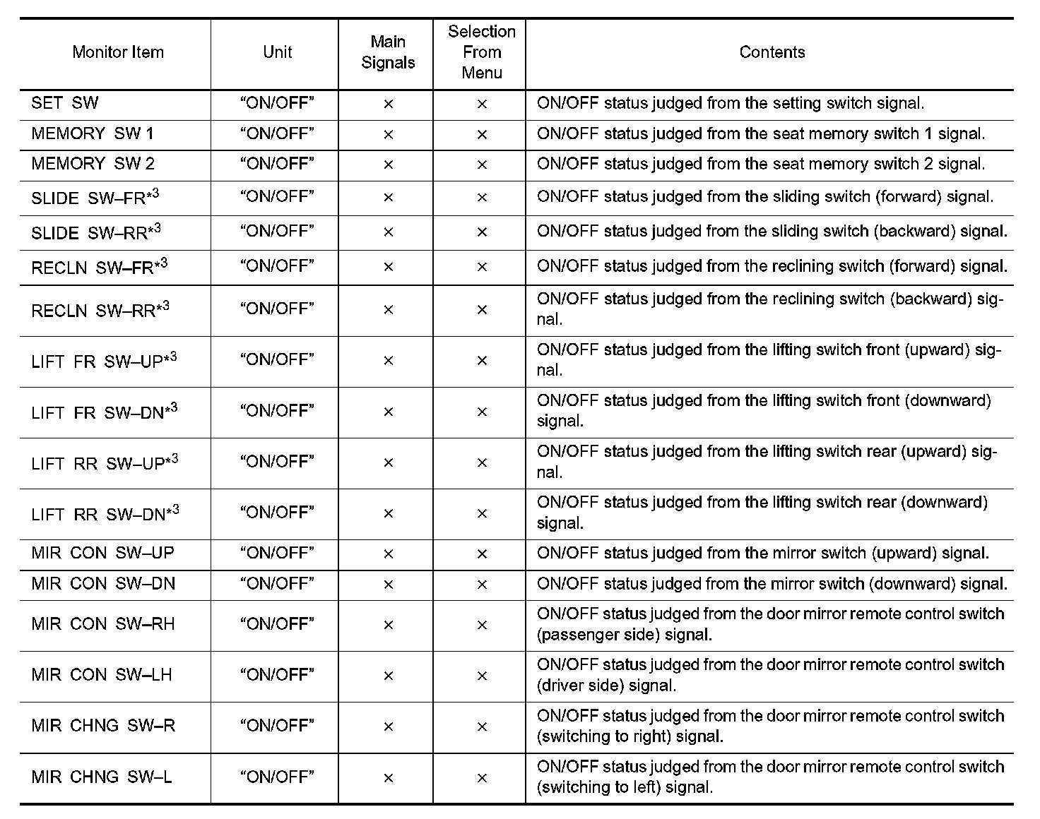 DIAGNOSIS SYSTEM (DRIVER SEAT C/U)