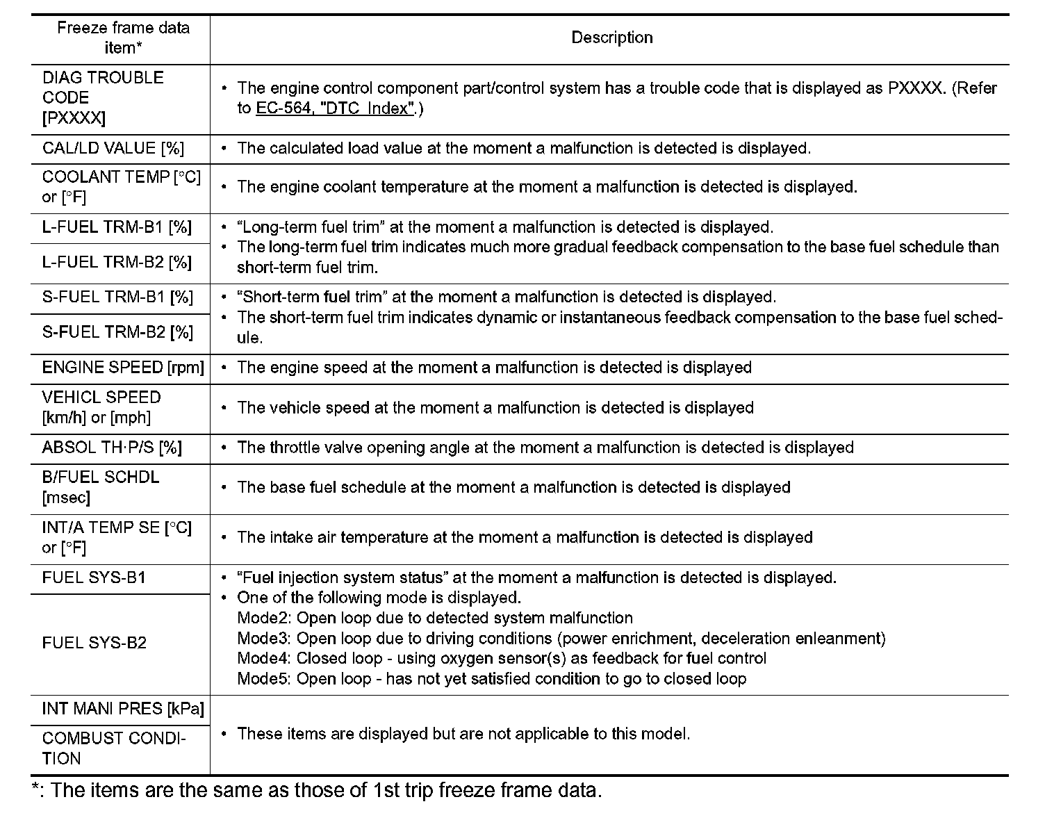 - 1st trip freeze frame data
