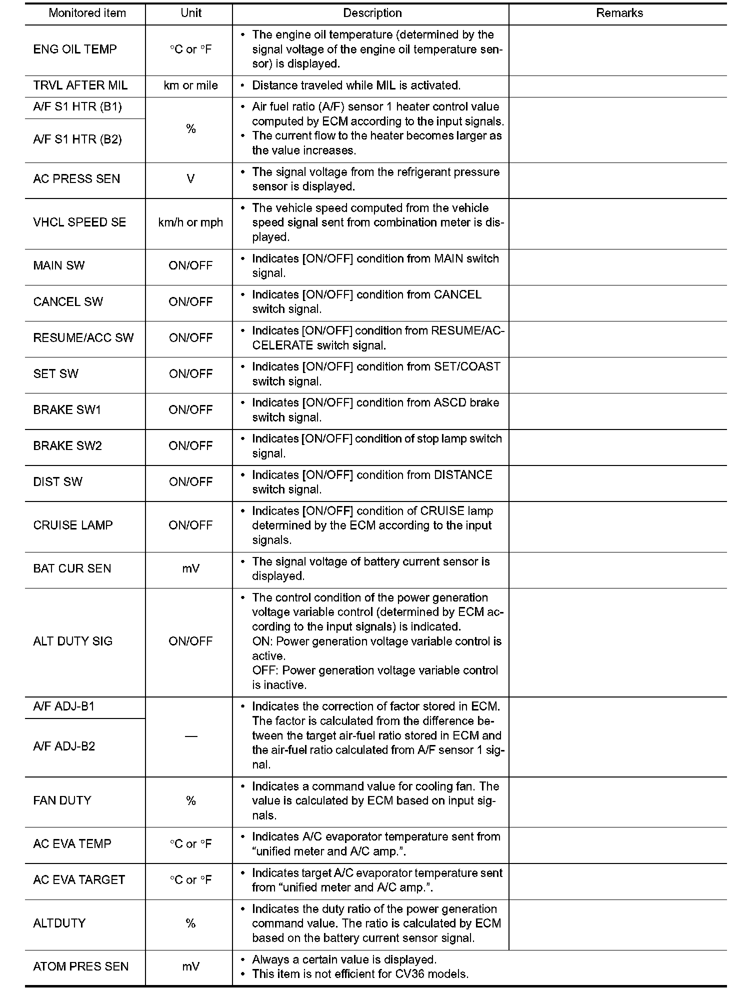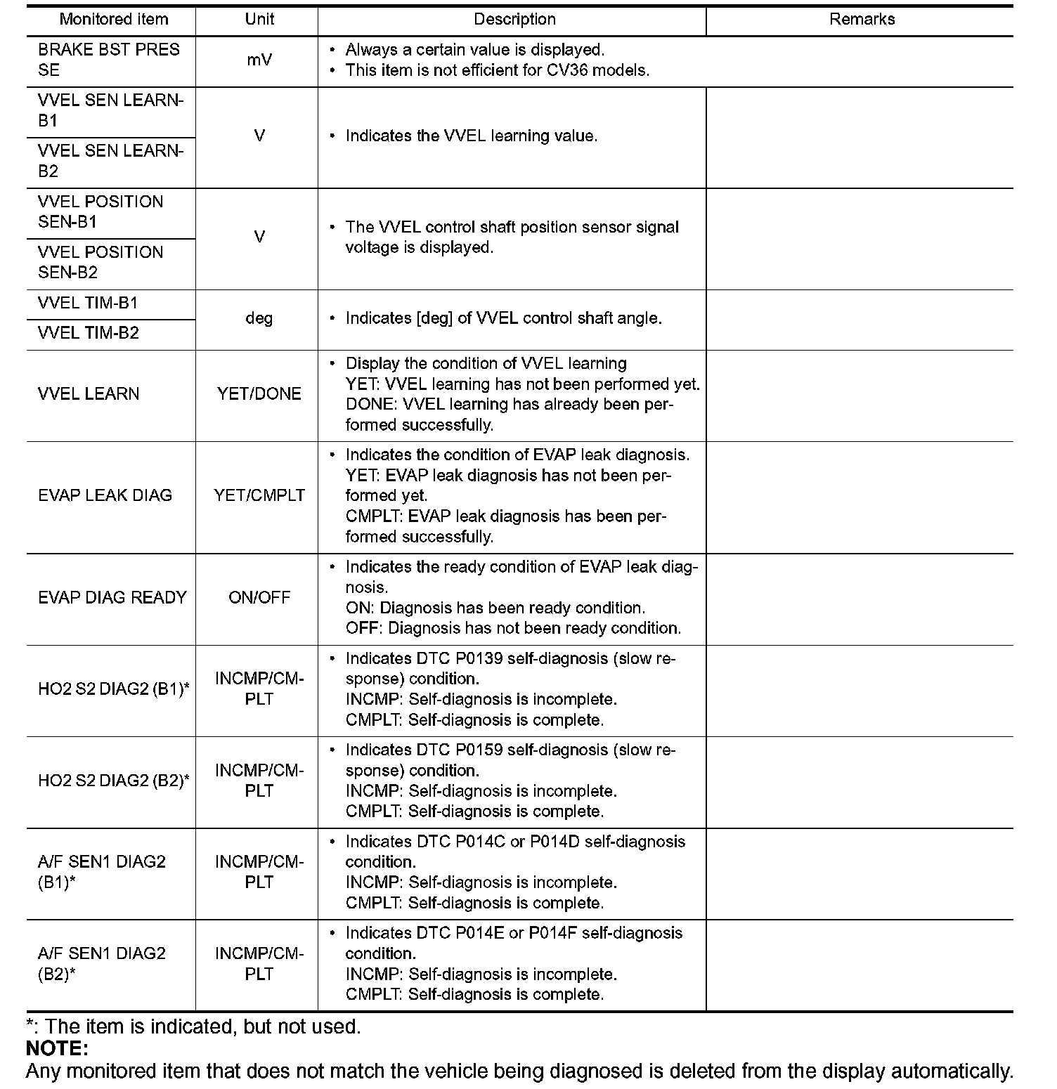 Regarding items of DTC and 1st trip DTC, Testing and Inspection.