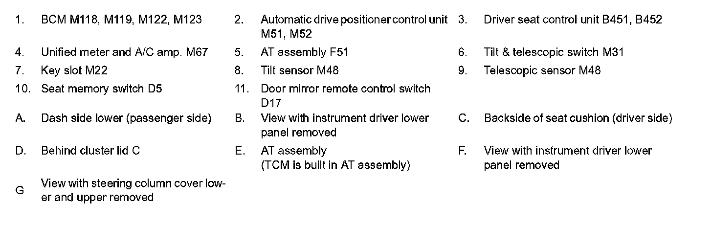 INTELLIGENT KEY INTERLOCK FUNCTION : Component Parts Location