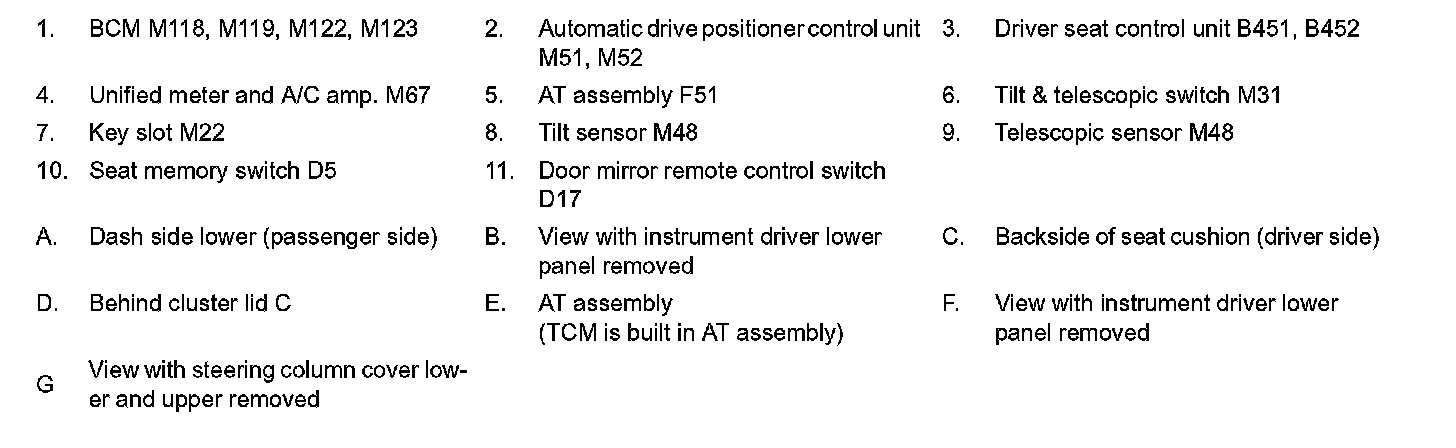 MEMORY FUNCTION : Component Parts Location