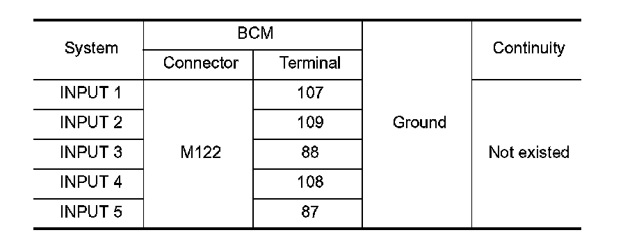 2.CHECK INPUT 1 - 5 SYSTEM CIRCUIT FOR SHORT