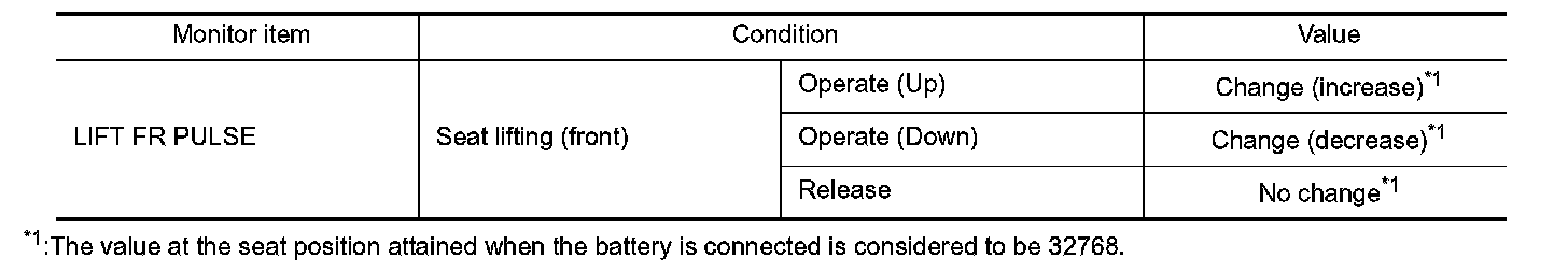 3. Check the lifting sensor (front) signal under the following conditions.