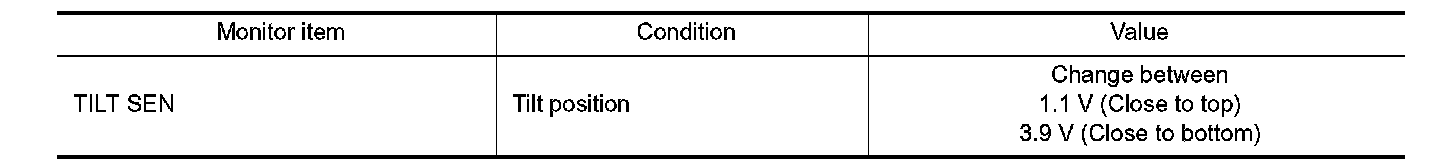 3. Check the tilt sensor signal under the following condition.