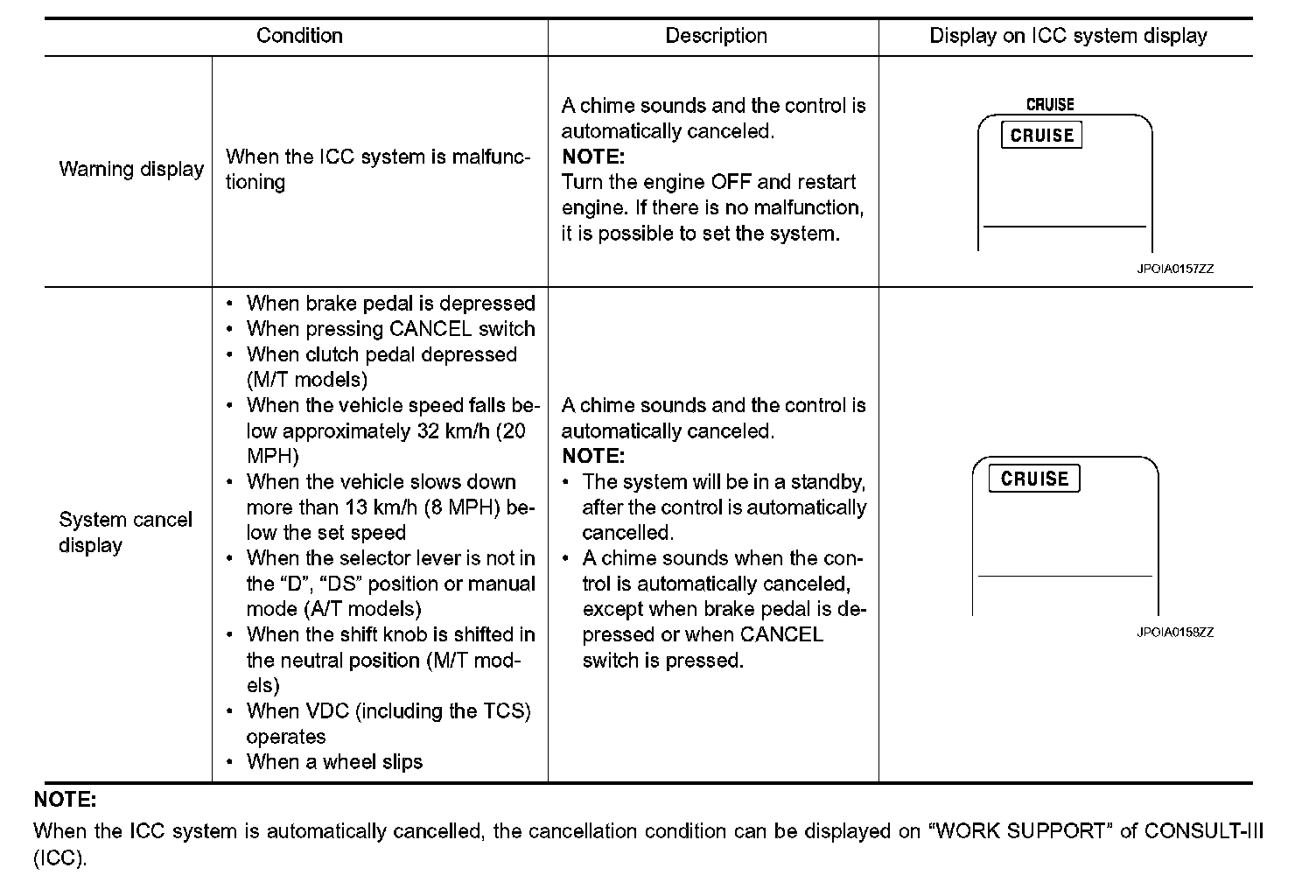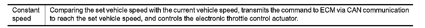 In the conventional (fixed speed) cruise control mode, a warning chime does not sound to warn driver if own vehicle are too close to the vehicle ahead, as neither the presence of the vehicle ahead nor the vehicle-to-vehicle distance is detected.