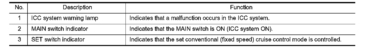 After hold the MAIN switch ON for longer than approximately 1.5 seconds, the ICC system display goes out.