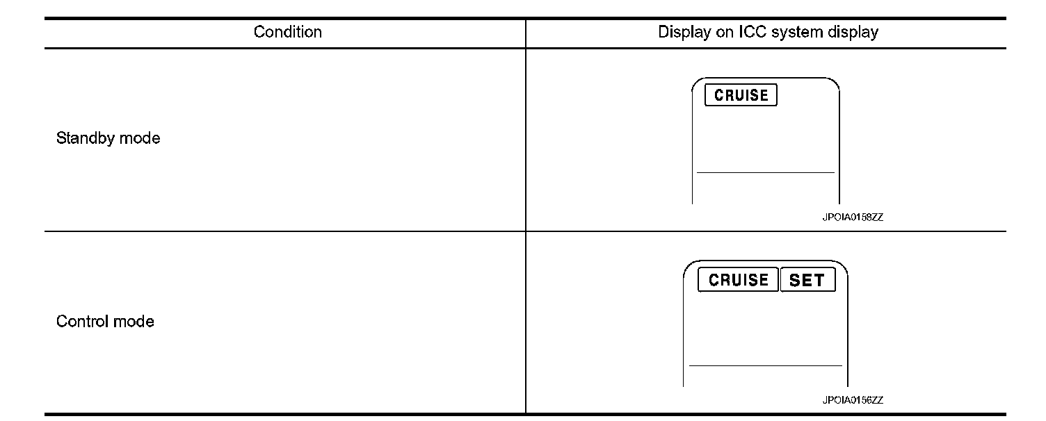 When pushing the MAIN switch ON, the ICC system display and the MAIN switch indicator are displayed on the information display.