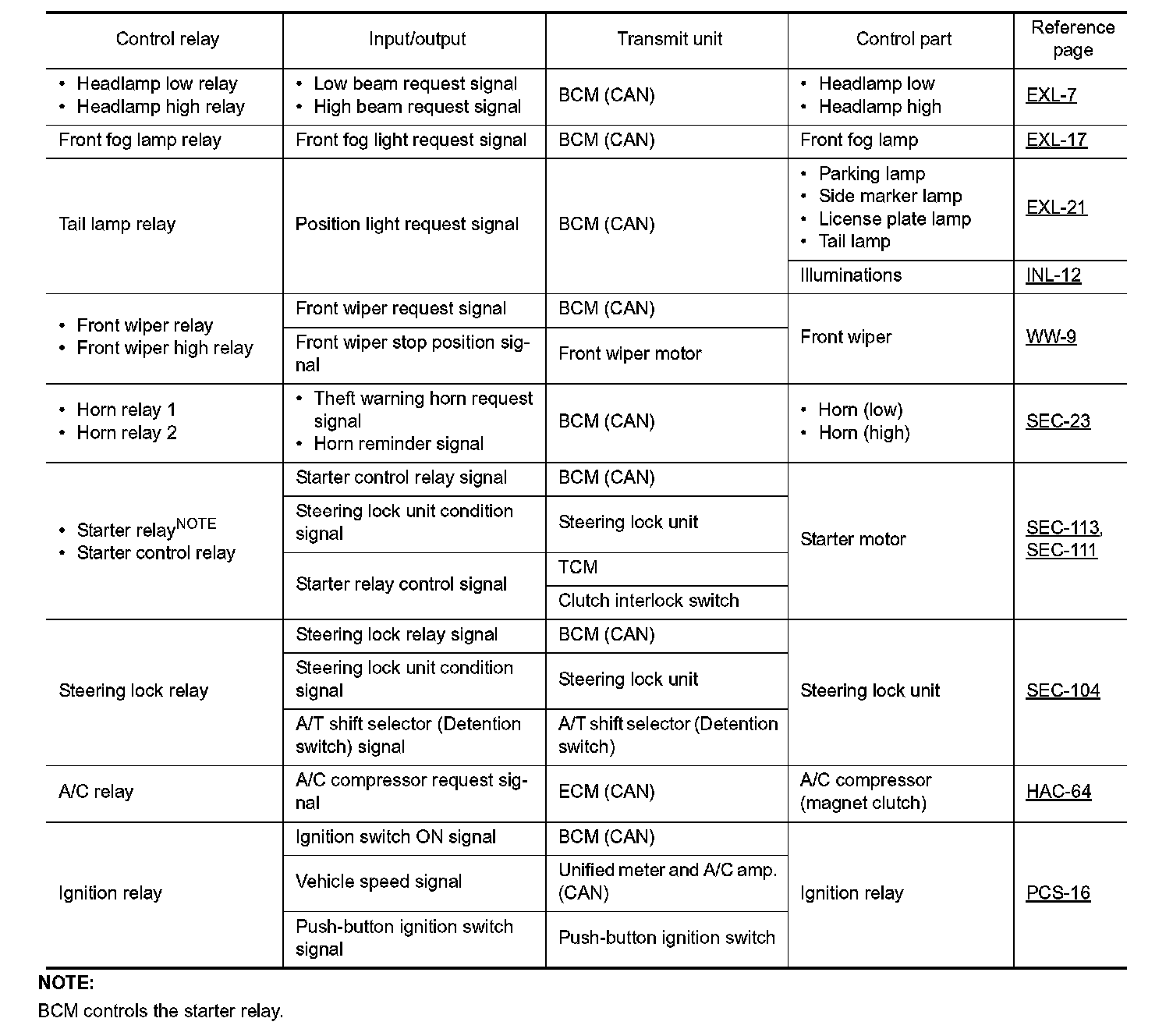 IPDM E/R activates the internal control circuit to perform the relay ON-OFF control according to the input signals from various sensors and the request signals received from control units via CAN communication.