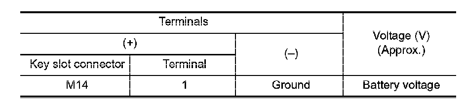3. Check voltage between key slot connector and ground.