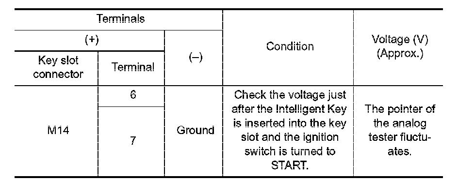 2. Check voltage between key slot connector and ground.