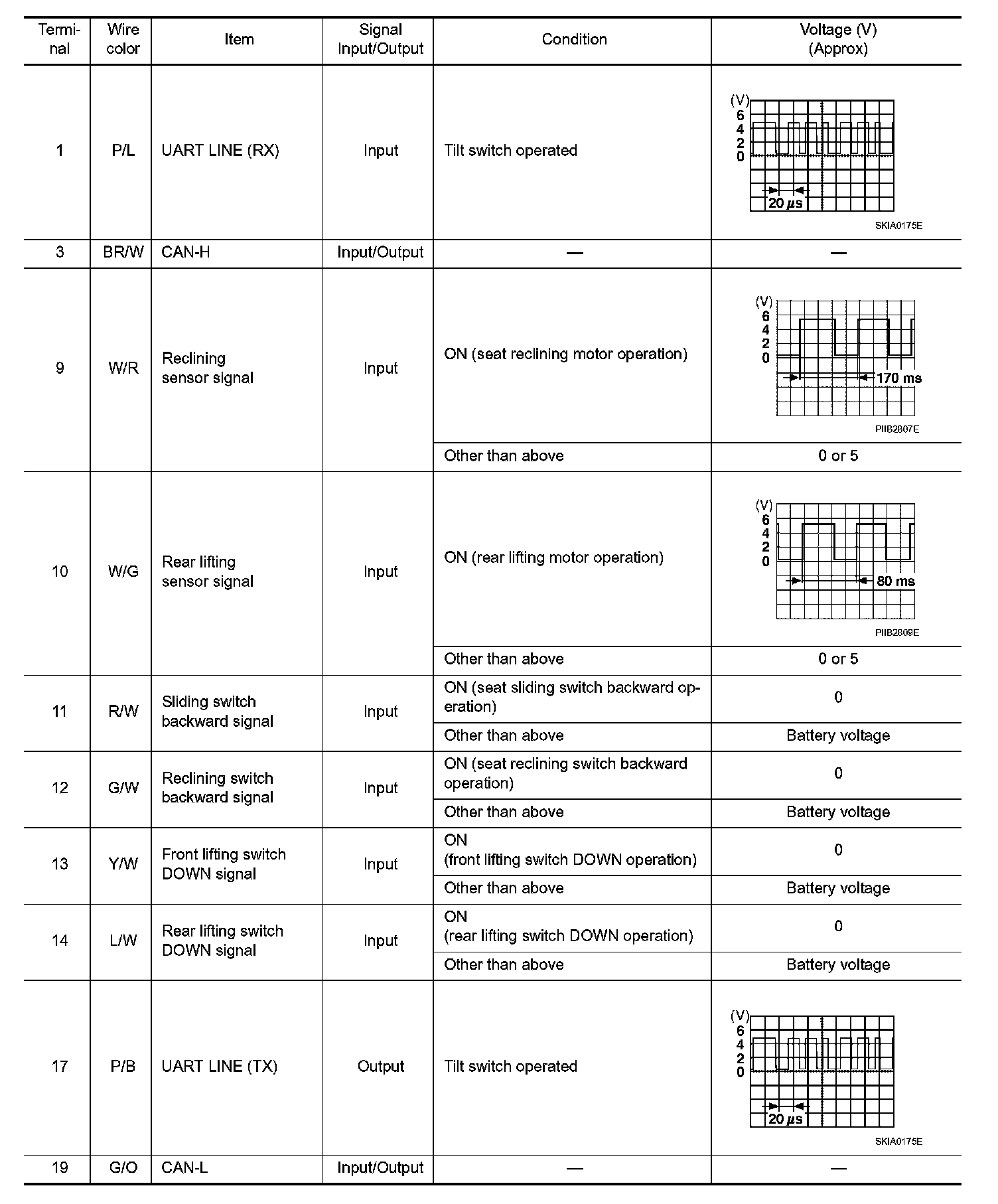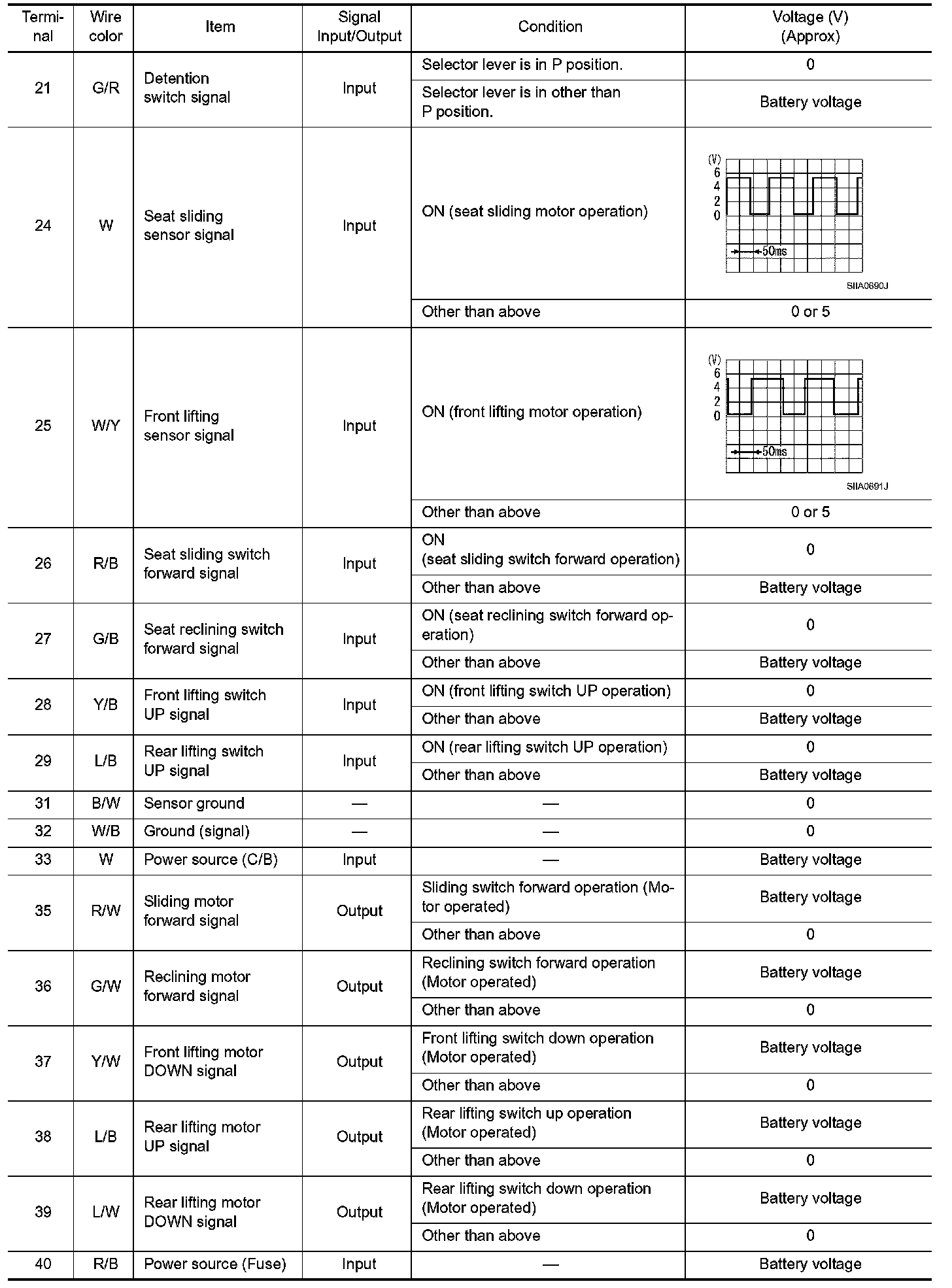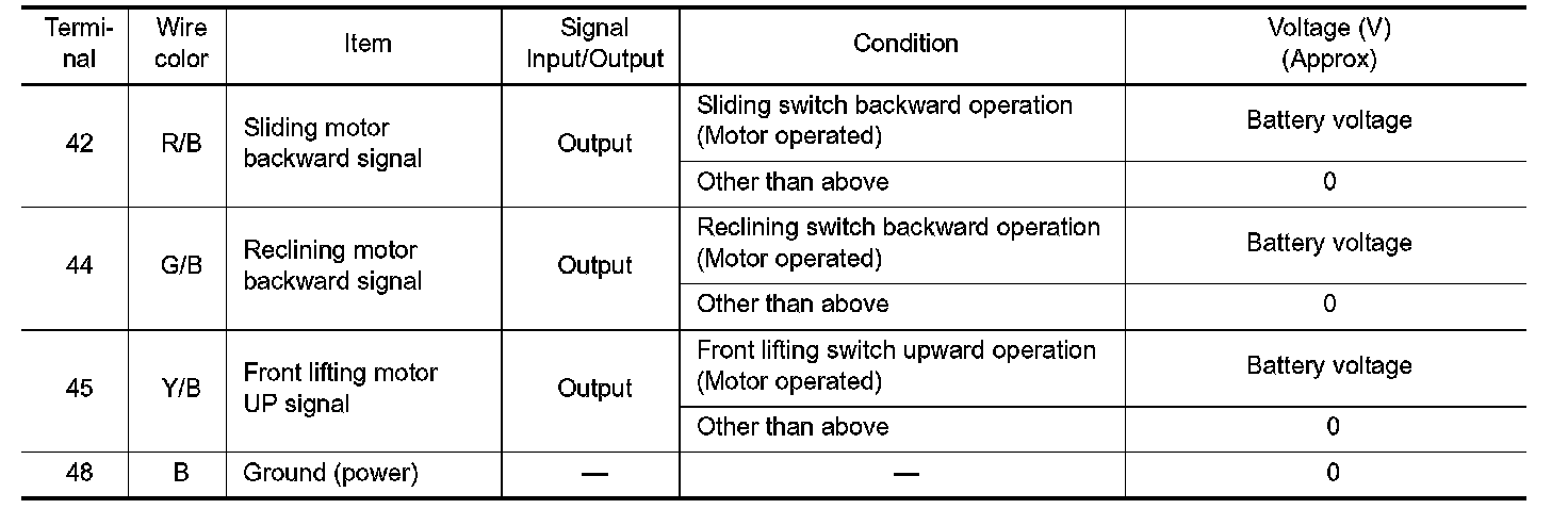 Terminal and Reference Value For Driver Seat Control Unit