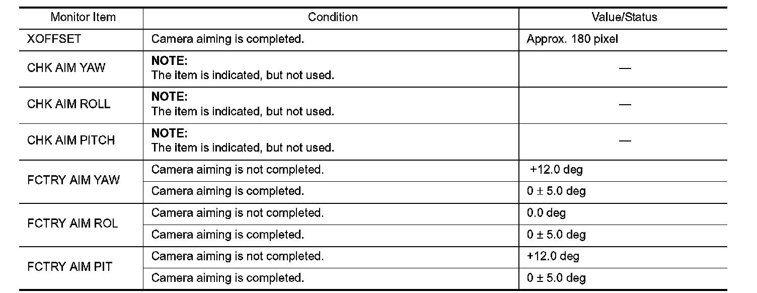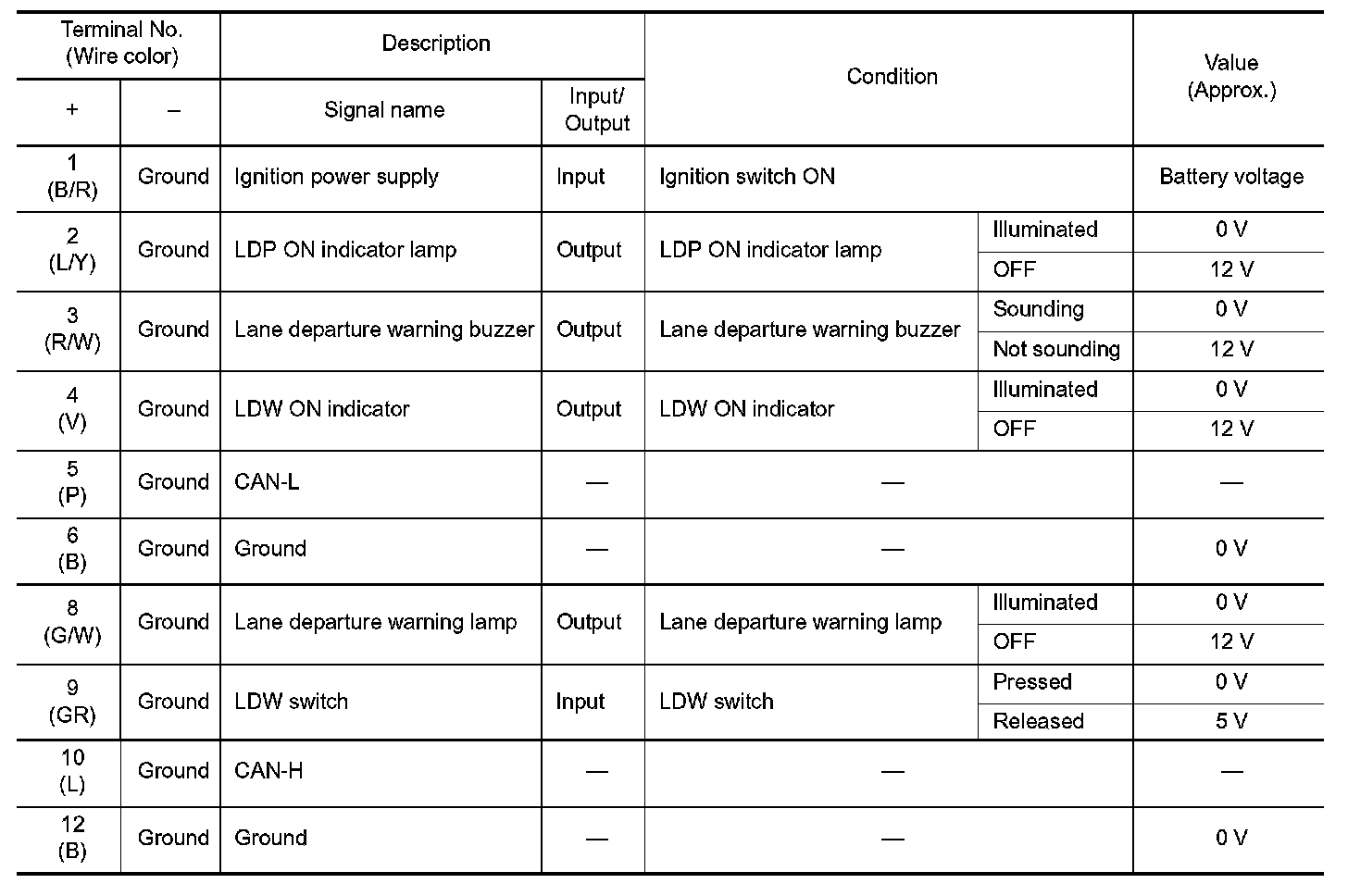 Pinout Values and Diagnostic Parameters