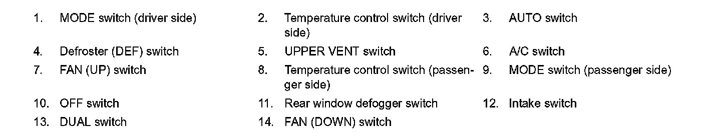 - When the DUAL switch indicator lamp turns OFF, the driver side and passenger side outlets are switched together.