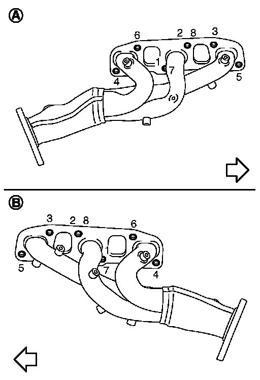 Tighten nuts No. 1 and 2 in two steps. The numerical order No. 7 and 8 shown second step.