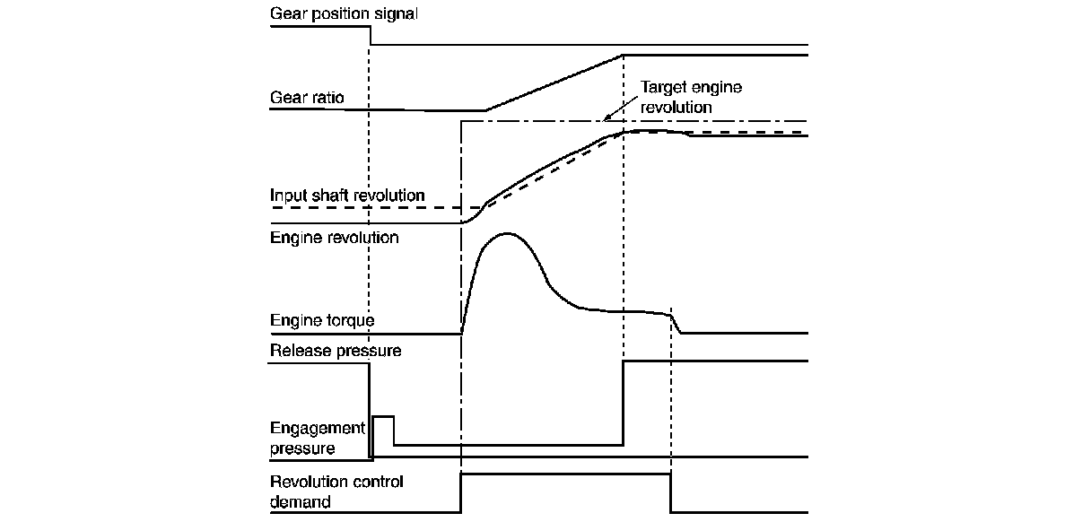 - TCM synchronizes engine revolution according to the revolution control demand signal.