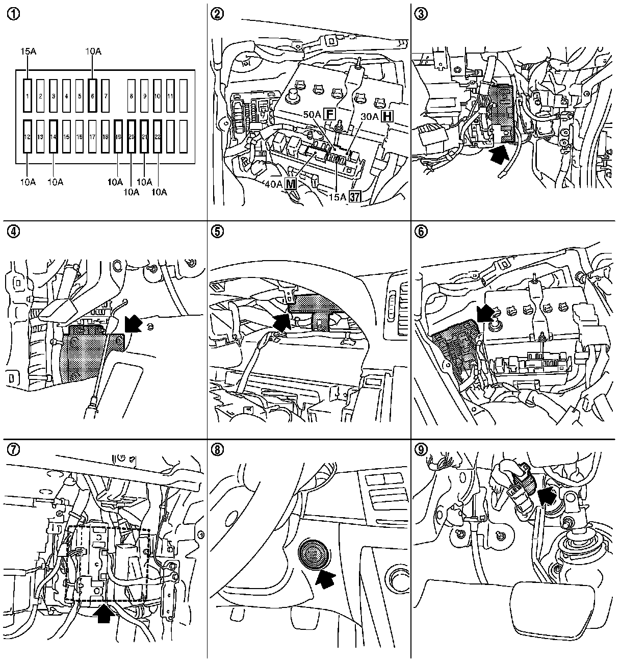 Component Parts and Harness Connector Location