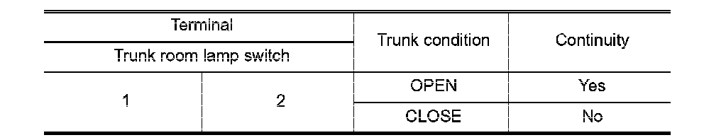 OK - Trunk room lamp switch circuit is OK.