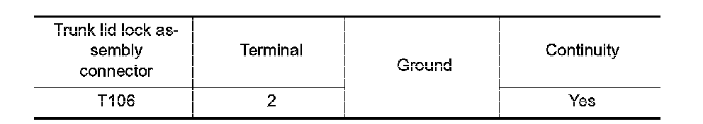 Check continuity between trunk lid lock assembly connector and ground.