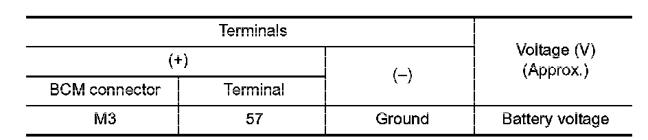 2. Check voltage between BCM connector and ground.